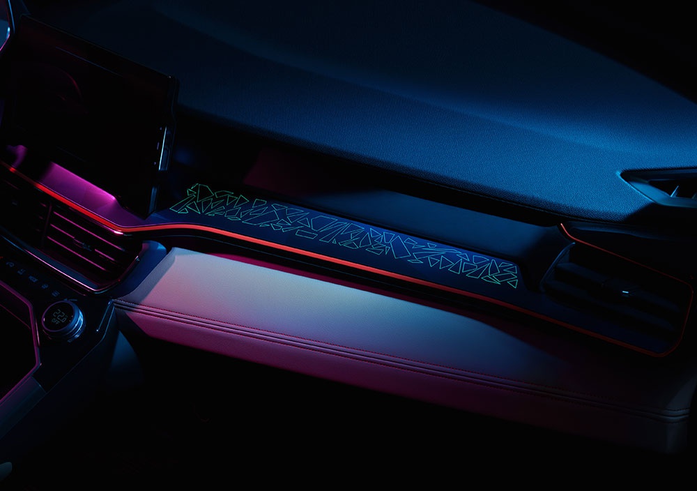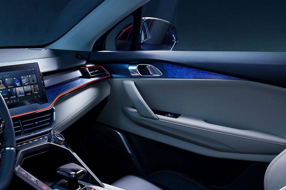其中,印象最为深刻的莫过于膜下氛围灯。不同于常规的氛围灯更多是用来勾勒车内的设计线条,这种氛围灯在开启的时候能够更好的够烘托车内气氛,再加上呼吸灯的设计,更是让领克06充满了神秘的科幻感。