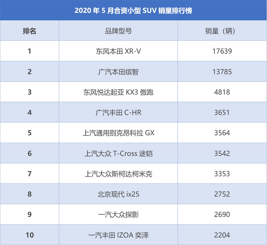 文章开头已经谈到,小型SUV市场这几年处于势微状态,从销量数据看,合资小型SUV目前除了本田XR-V和缤智两款产品双骑绝尘之外,基本上都属于边缘化角色,即便将这份排行榜的范围扩大至国产品牌,能够月销破万者也是寥寥无几,唯有吉利缤越的销量能够稳定在万辆上下。