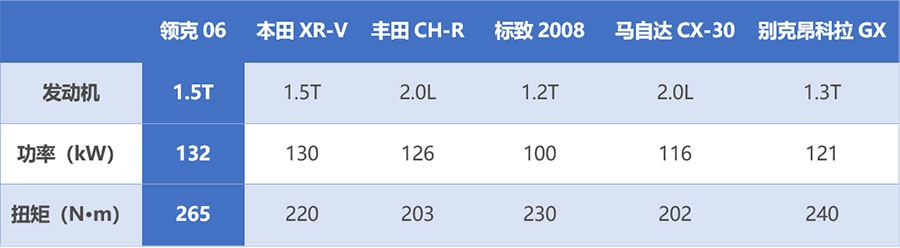 又比如面对消费者的性能需求,领克06搭载的这台Drive-E 1.5T发动机,不仅最大功率和最大扭矩这两项关键参数超过了同级别的合资竞争对手,领克01、领克02、领克03等多款产品上的实装验证,也帮助其获得了出色口碑。