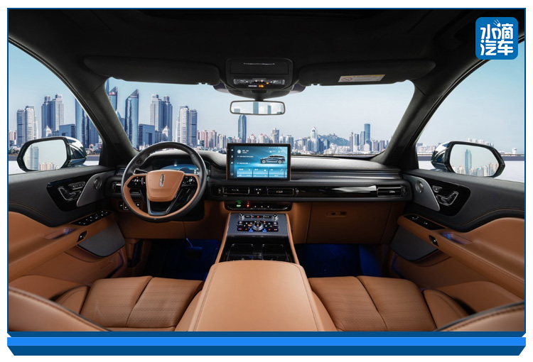 新车内饰的中控台为大面积的木质以及黑色烤漆装饰,并配有全液晶仪表盘以及专供中国市场的12.8英寸悬浮式屏幕,达到了豪华车应有的水准。