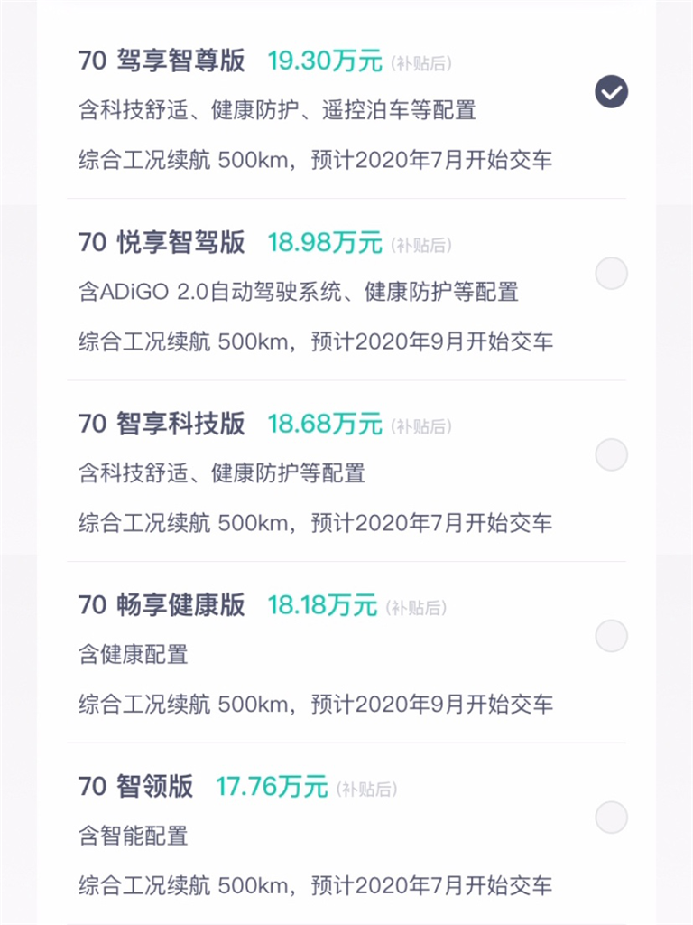 从这13款可选车型及更为丰富的定制服务中,充分展现出埃安“有爱相伴的智能移动出行”理念。以埃安V 70智领版车型为例,其豪车级装备及500km续航性能,完全能满足绝大多数城市用户的日常通勤及周末出游需求。