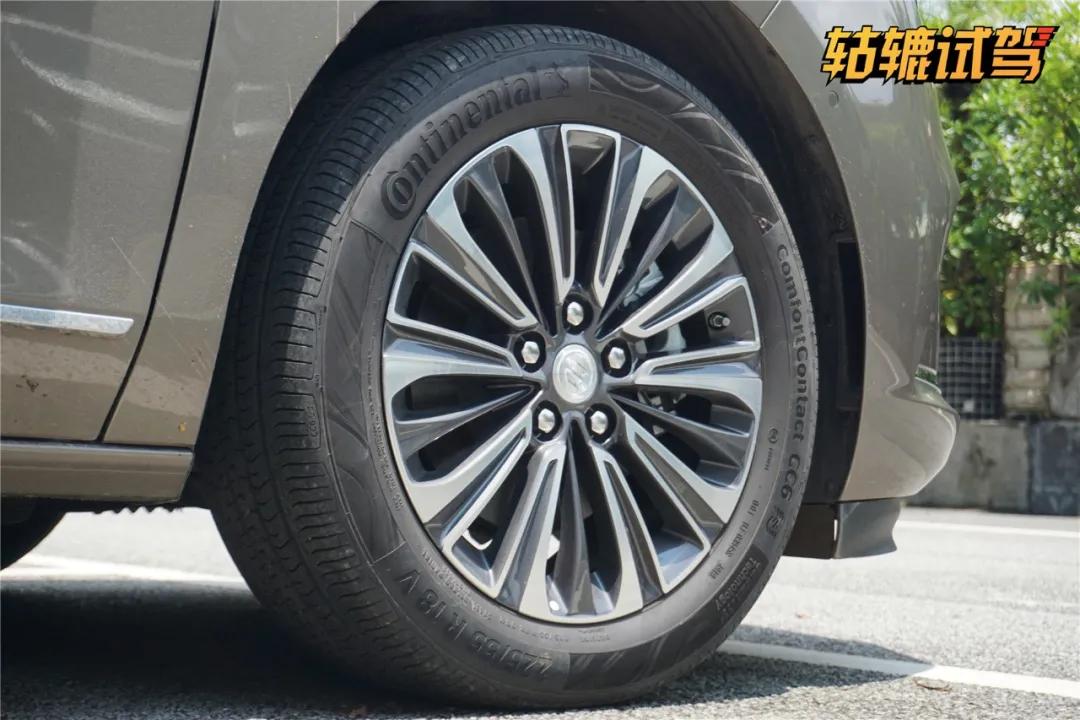 车身侧面依旧给人一种稳重大气之感,配合18寸双色铝合金轮毂,质感加分。(甚至比GL8 艾维亚六座版的车型更显精致)
