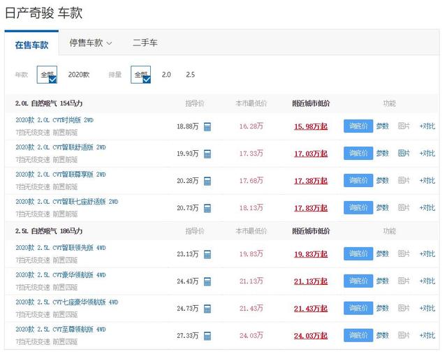 产品力方面,在售的奇骏提供2.0和2.5L两款动力总成,如果没有四驱需求,那选择2.0L的两驱版车型即可。外观上也是标准的城市型SUV风格,内饰虽然比较老气,但胜在大沙发座椅十分舒适,再加上不错的燃油经济性以及日产品牌的质量口碑,因此如果能以更低的价格就入手一台奇骏,我觉得也还是挺值得去选择的。