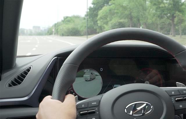 第十代索纳塔的整套车机和辅助科技有非常多的东西可以说,我们从仪表盘说起。打转向显示变道辅助视频,现在很多车都有,但是很多车都选择把视频放在中控屏幕上显示,我一直都觉得这个设计做得不够极致,还有优化的空间。因为不管是看中控还是看外后视镜,我的视线都要暂时离开前方的路面,区别其实并不大。辅助视频和后视镜最大的区别就是视角稍广。我曾经也想过把它放在HUD的位置,虽说可以保持视线,但是显示效果肯定不好。第十代索纳塔则将它放在了仪表盘上,这真的是一个非常棒的设定。在现代的系统中,这个功能叫做BMV盲区显示系统,这套系统在起亚全新K5 (配置|询价)上也有所呈现。在使用这个功能时,虽然视线的焦点离开了路面,但是余光还是能看到前方的大致情况。如果你不喜欢这个位置,也可以把辅助转向视频放在中控显示。