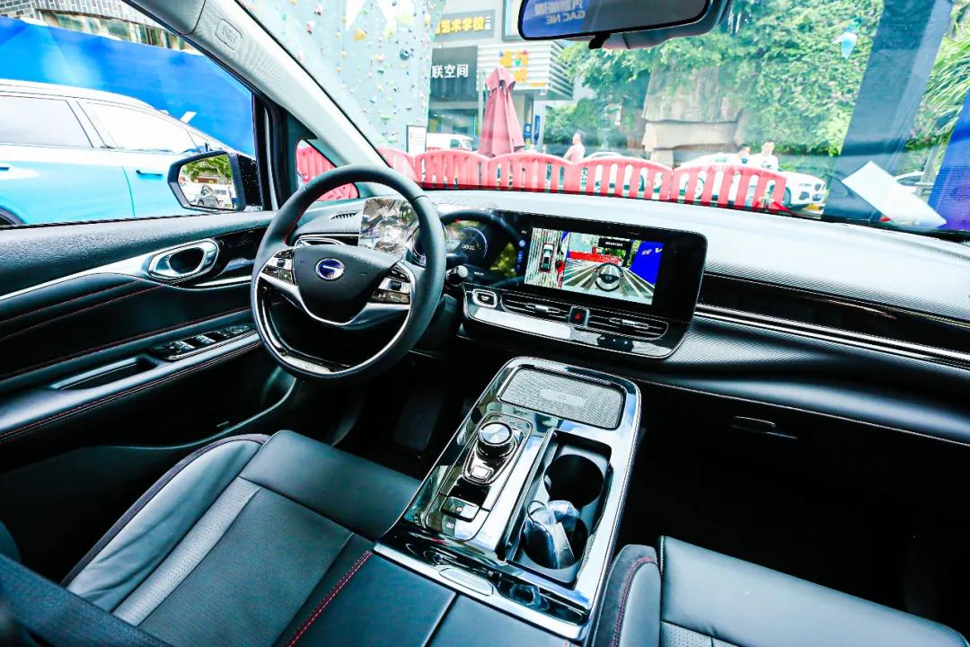 埃安V的内饰采用了环抱格局设计,双12.3英寸大屏带来满满的科技感,物理按键的减少已经成为新能源汽车的常规操作。据悉埃安V配备了广汽新能源自主研发的中国首个集成5G+C-V2X车载智能通讯系统,搭载华为新一代5G车载模组,配备巴龙5000芯片,为智能互联提供最坚实的保障。
