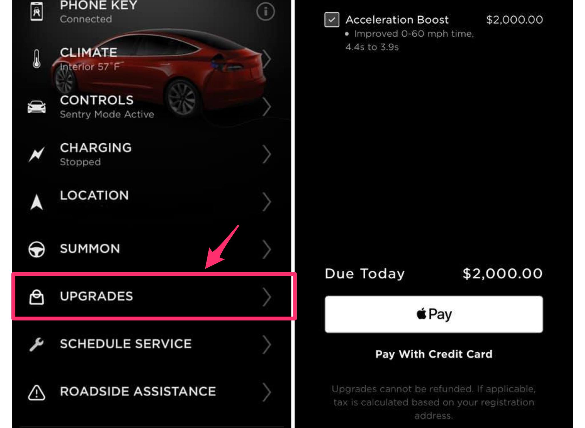 一次性升级服务Acceleration Boost,让Model 3 (配置|询价)的车主可以花费2000美元将汽车的百公里加速从4.4秒提升到3.9秒;以及不知道会何时落地的全自动驾驶功能,需要花费7,000美元(国内价格为56000元)的预付选装费。