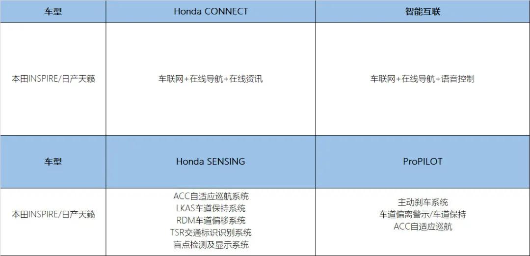 本田INSPIRE有着Honda CONNECT+Honda SENSING,而日产天籁手里握着日产智能互联+ProPILOT。