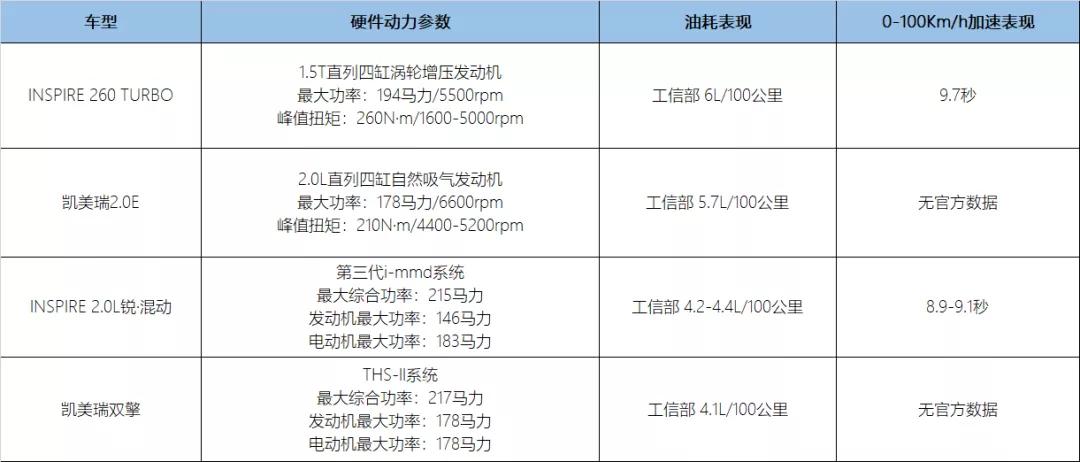 从账面数据上看,尽管丰田凯美瑞在这一代车型上应用了热效率极高的自然吸气发动机,但本田INSPIRE还是能牢牢的把握着优势。1.5T 260TURBO版本,在加速、最大功率、峰值扭矩方面都做得更好,同时它有着更宽的动力输出转速区间,这意味着车辆的动力输出能始终做到随踩随有。