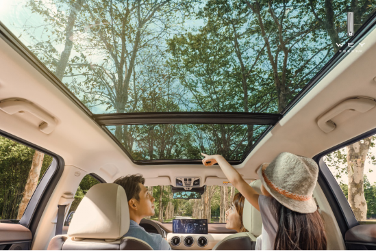 新车座舱空调系统采用车规级CN95级别空调滤芯,对≥0.3µm(微米)的颗粒过滤效率达95%以上。空气净化系统由负离子发生器升级为等离子发生器,杀菌除味功能更佳。而在夏季用车中,经过密闭暴晒的内饰闷热不适,此时座舱清洁功能派上用场,用户可在上车前通过手机WEY·道APP远程开启通风设备,对车内进行外循环换气和降温。