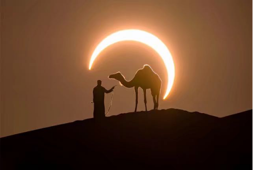 在朋友圈里,小编看到了这张构图完美,光线生动的照片,人与骆驼沐浴在日环食的光辉里,就像父亲对我们的呵护,无声且伟大。叹如此美景,只在沙漠里可得一见。