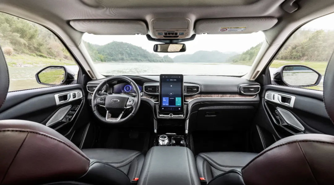 内饰部分可以说是褒贬不一,尤其是竖向的12.8寸中控屏,的确显得有些突兀。撇开突兀的中控屏不说,探险者的内饰设计还是比较简洁的,没有太多的实体按键(毕竟有那么大一块屏幕),旋钮式的换挡此前我们也在福克斯和锐际上看过了。
