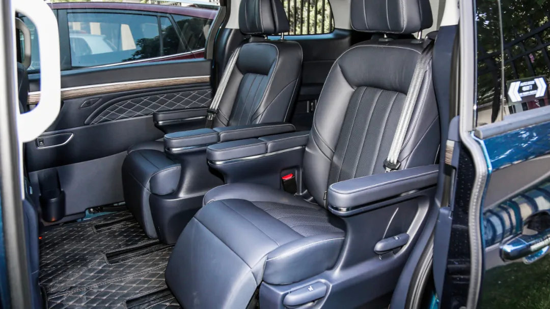 作为一台国产高端MPV,GM8大师版的后排待遇也达到了非常高的水平,两张头等舱级别的座椅能带来非常舒适的乘坐感受,此外它还有第二排独立空调、电动腿托、座椅加热、通风、按摩、Infinity音响等。动力方面则继续搭载2.0T发动机,最大马力252匹,最大扭矩390N·m,匹配爱信8AT变速箱。