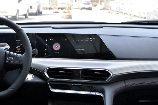 中控区域与仪表盘连接的同样是一块10.3英寸悬浮式触控液晶大屏,显示效果和界面流畅度都有着不错的表现。并配备了全新的车机系统,拥有更加优化的界面和更多的车内场景化感知,功能丰富,并带有高德地图与腾讯地图两款导航软件。