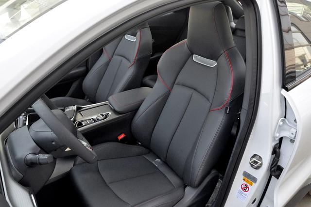 全系车型都配备了仿皮运动化一体式座椅,拼接处辅以红色缝线点缀,尊贵型主驾有电动座椅调节,顶配旗舰型标配主副驾电动调节和前排座椅加热,全系后排都可比例放倒,座椅包裹性都还不错。