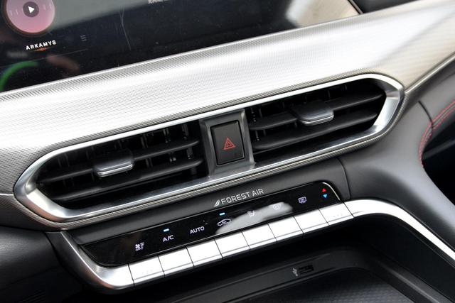 中控大屏下方保留了一排空调系统的物理按键,都是一些常用功能,还算是比较适合盲操作,按键设计采用了飞机座舱式设计,按键质感不错。