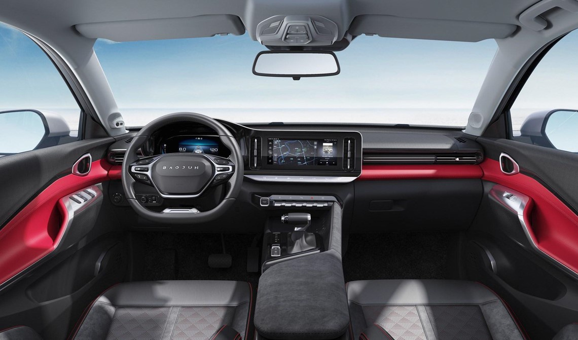 新宝骏RC-5采用了黑色与红色搭配的内饰设计。大尺寸液晶中控显示屏、全液晶仪表盘以及双辐式多功能方向盘,增添了科技感。中控台以及车门侧面包裹有软性材料,提升了内饰质感。