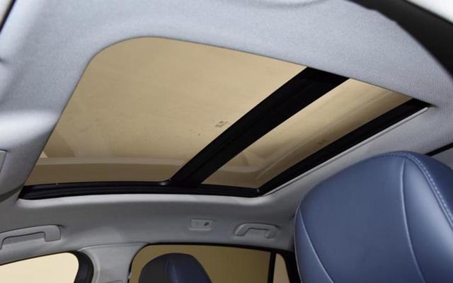 座椅造型没变,蓝白双色的设计很耀眼,让人有种想一屁股就坐上去的冲动。天窗面积不小,开启后采光也还行。