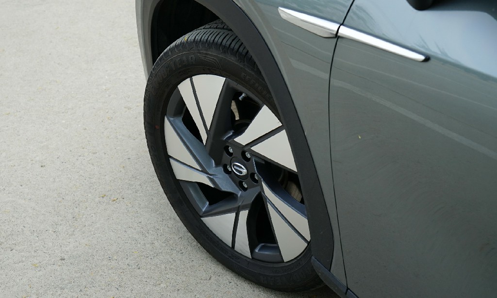 当然,为了配合硕大的外形设计,Aion LX 80在行走系统上使用了尺寸达到了245/50 R20的轮胎,并且轮胎使用的是固特异御乘EfficientGirp花纹,讲究静音、节能。实际跑起来悬挂的路感明显,交流比较丰富,倒是噪音控制得不错,车速80km/h也不明显。