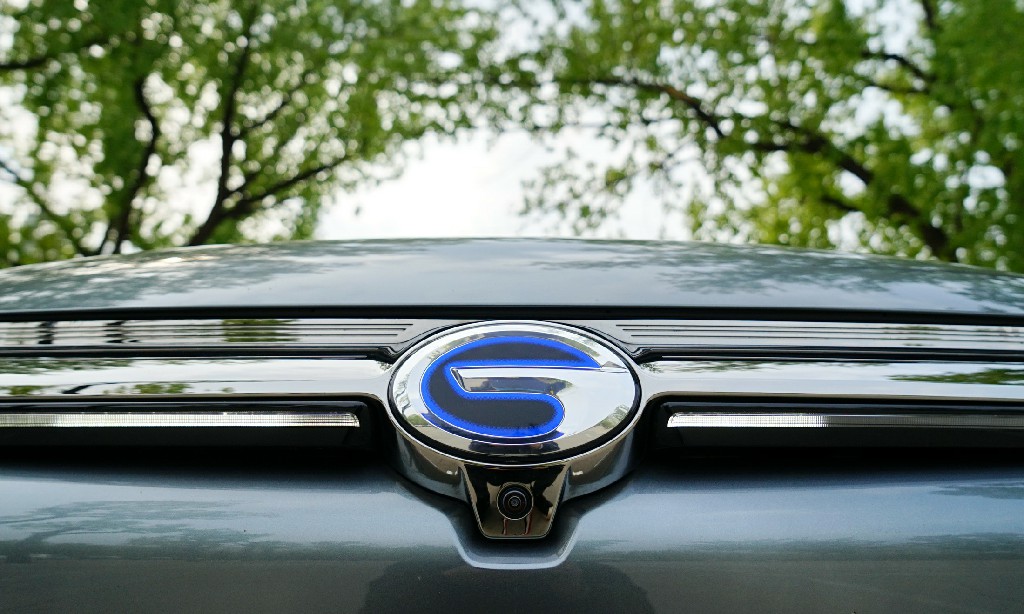 蓝色的广汽Logo,下面还有一枚前置摄像头