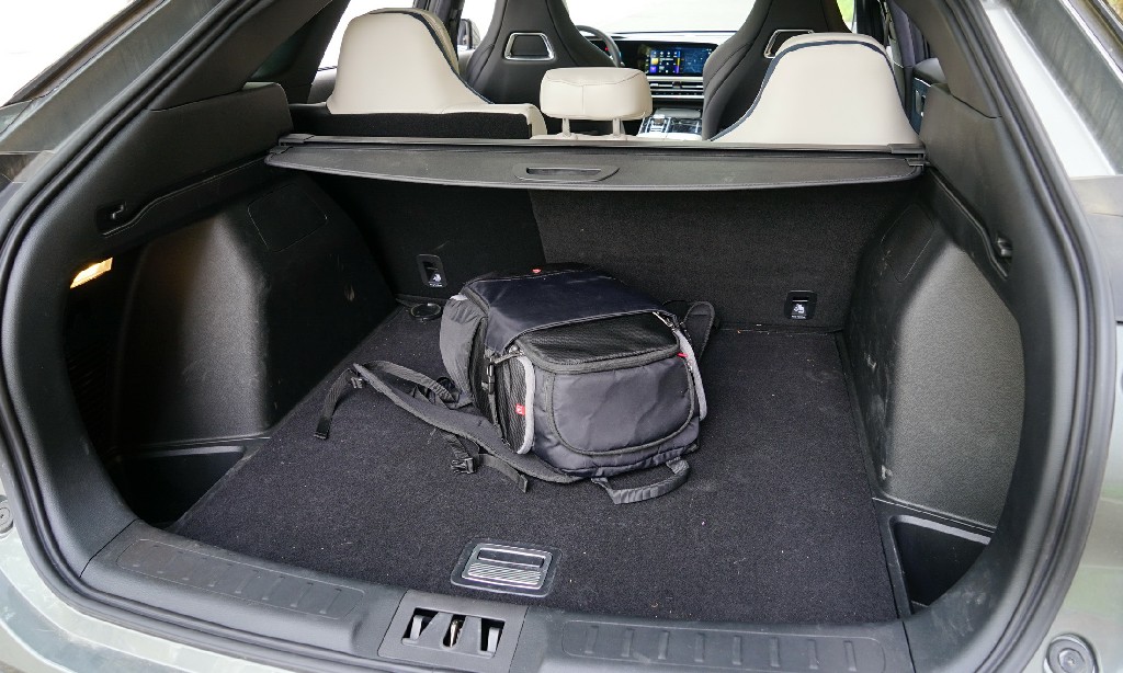 前面我们提到Aion LX的个头很大,一方面是长车身、长轴距营造的空间,另一方面则是车厢布局优化的成果。在满足五名成年人舒舒服服的乘坐同时,这台车还有一个宽敞的行李厢空间,甚至从第一排到行李厢还做了不少花样。