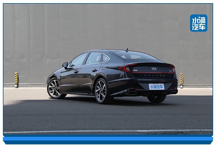 车尾部分,第十代索纳塔的亮点集中在贯穿式尾灯,点亮后视觉效果更显时尚。车尾下方,新车运用双边单出大尺寸排气口,进一步凸显运动氛围。