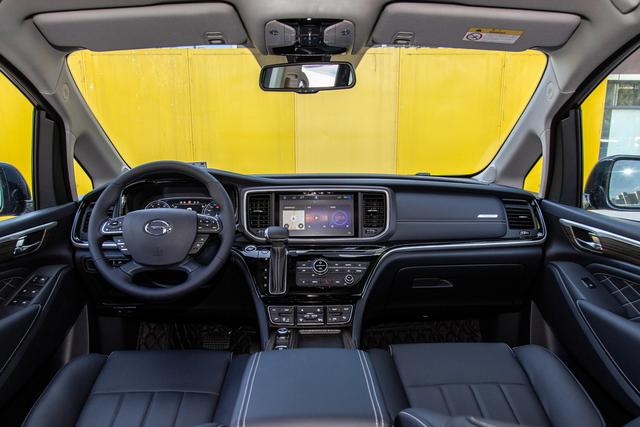 传祺GM8大师版的内饰比较常规,整个中控台与现款GM8别无二异,不过四门门板处新增的菱形设计和米白色的配色提升整个车内的档次感。