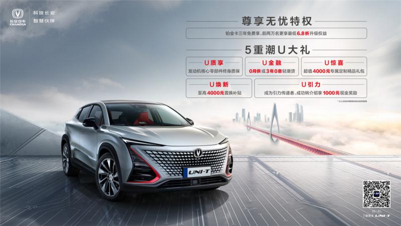 当然,还有一个引力,那就是价格和服务。长安UNI-T共推出豪华型、尊贵型、旗舰型3款车型,官方指导价11.39万元—13.39万元。不仅价格亲民,还构建全新的“五大承诺”服务体系,同时,还推出UNI用户专享U享卡服务权益,提供免费上门试驾、交车、服务等多达14项专属权益,让你用车无忧,畅享美好汽车生活。