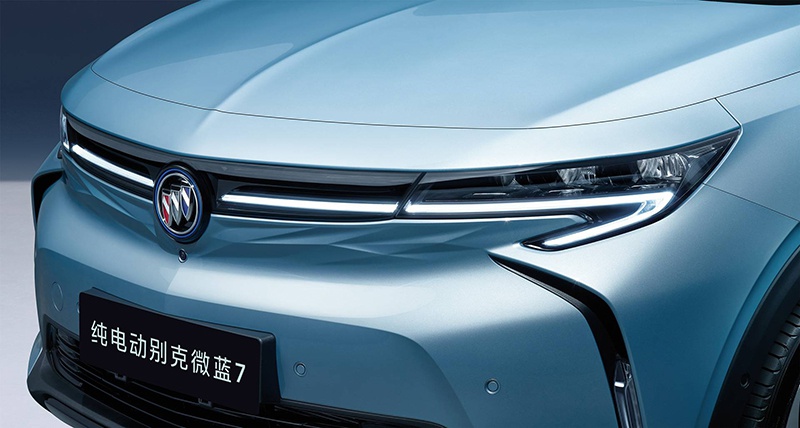 外观方面,新车采用了有别于别克微蓝的设计语言。回旋镖样式灯带位于两侧扁平造型的前大灯组下沿,燃油车上飞翼式的镀铬装饰变成了灯带,与大灯内部的光带融汇贯通。