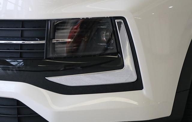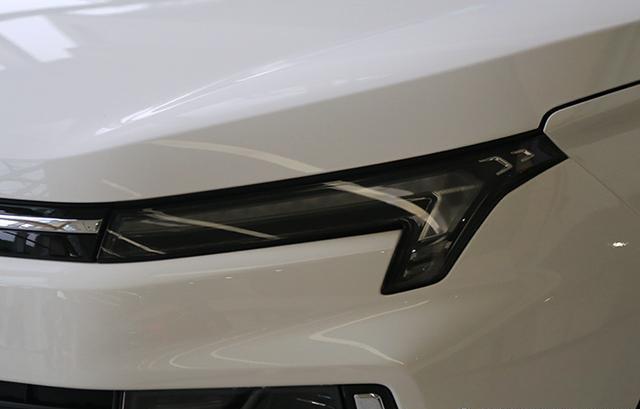 真正的大灯其实隐藏在了保险杠内,而且是全LED的结构。上方的灯组只是日间行车灯而已,而且中间也没有左右贯穿,中间只是镀铬装饰条而已。