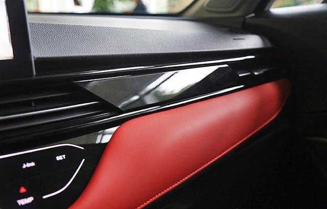 整个内饰的用料也相当不错,大部分区域都用了红色的皮质包覆,而且我比较喜欢的是,它的红色看着很舒服,不像后市场改装的那么山寨。