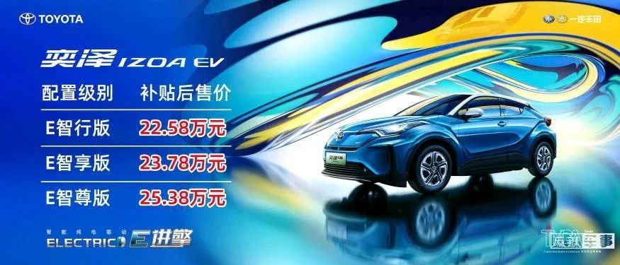 20日,作为丰田电动化战略在华实施的首款纯电动车型,一汽丰田奕泽E进擎在成都上市,奕泽E进擎共推出3款车型,补贴后售价为22.58万-25.38万元。