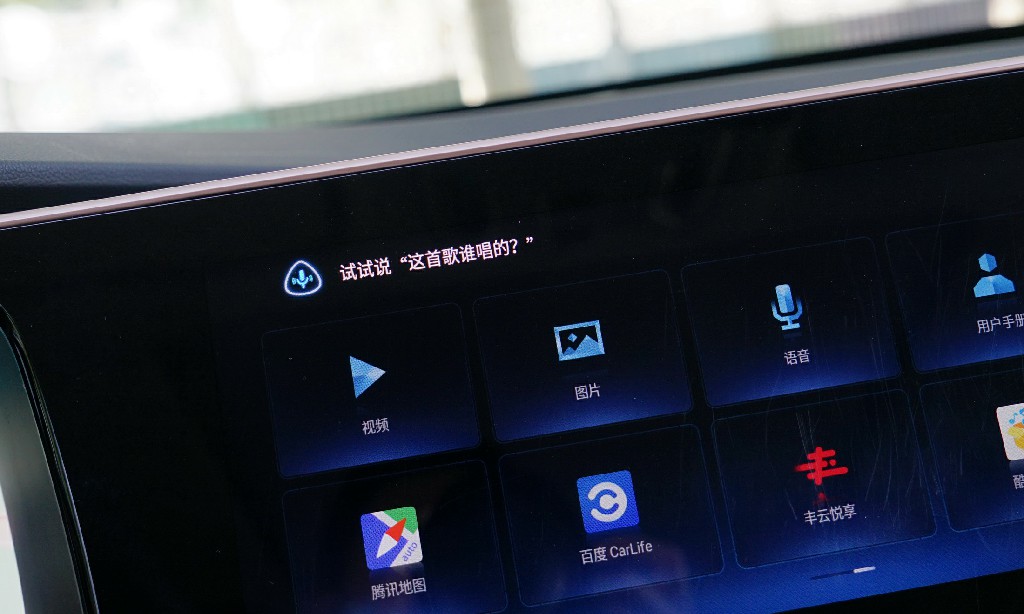 从整个操作系统来看,操作硬件就是这块12.3英寸的多点触控电容屏,背后的智能车联网系统则是和腾讯联合开发的,包括腾讯地图、QQ音乐用起来都非常方便,而且操作反应很快。