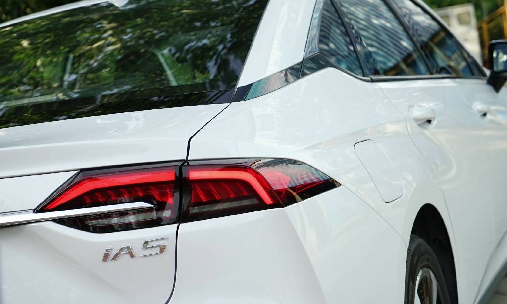 iA5的车身处理得比较光滑,没有复杂的装饰,车头保险杠有一些改善气动的裙边,车尾后备厢盖则有一个微微翘起的“鸭尾”,其整车风阻系数仅为0.245,在一定程度上能减小风阻对能耗的影响。