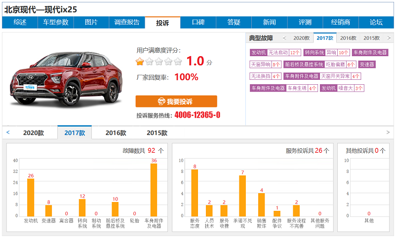 这样大面积的出现发动机故障,这样的汽车产品难说是一款合格的汽车产品,更令消费者难以接受的是,虽然上一代ix25车型历经多次改款,但是一直没有对发动机启动困难的故障进行彻底解决,发动机故障率一直高居不下。