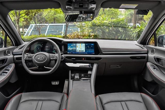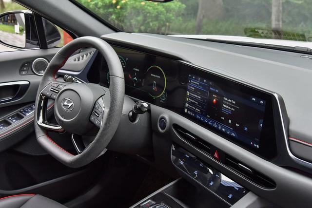 内饰方面,第十代索纳塔基本和海外版车型保持一致,方向盘采用四辐式设计,此外,第十代索纳塔在座椅、车门饰板、中控饰板以及中央扶手等处,均采用轻质织物和皮革结合的材质进行包裹,以提升车内质感。