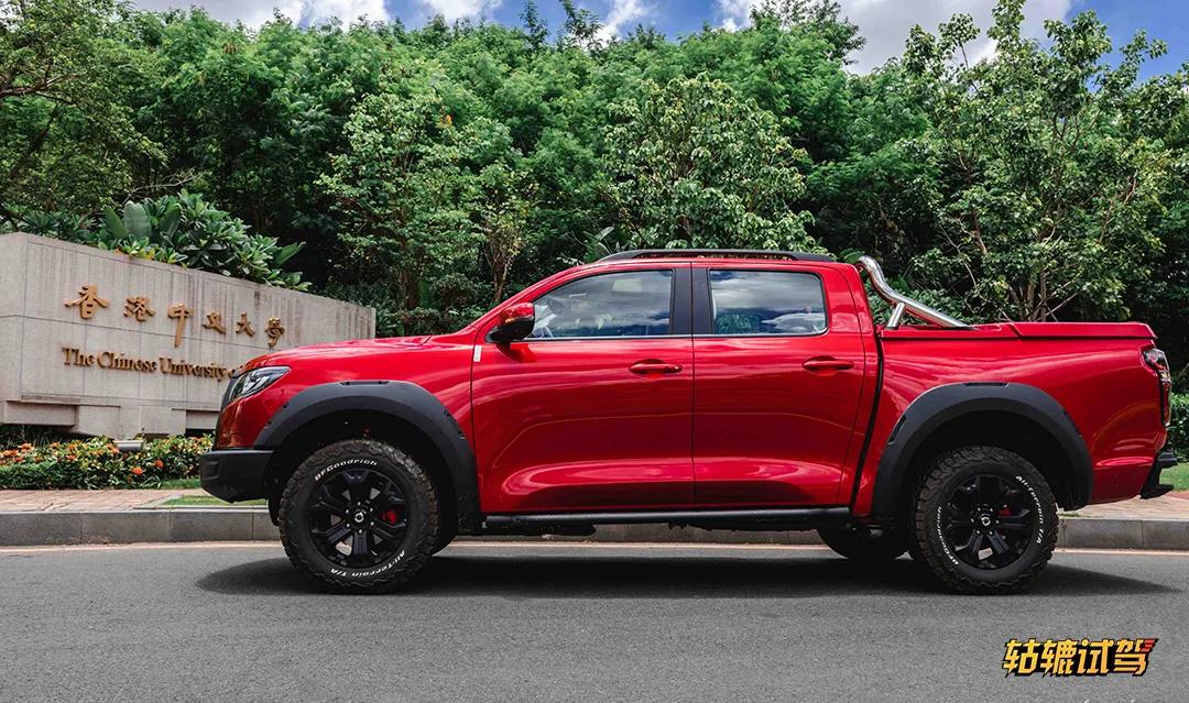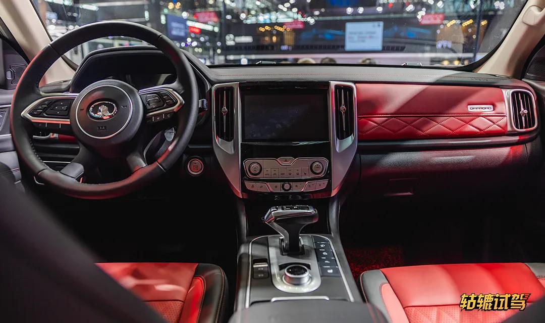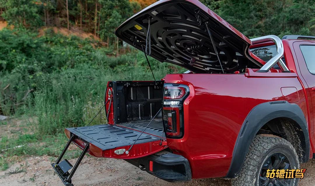 坐进驾驶舱,黑红双色配色、7英寸液晶仪表、9英寸中控屏、电子挡把,再搭配随手都能触及得到的软质包裹以及副驾驶座前方红色菱格装饰,透露着一股在皮卡车型中极少能够出现的豪华气息,甚至比市面上许多SUV车型的内饰都要精致有质感。