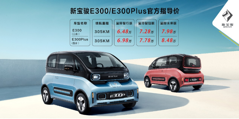 还记得前不久走街串巷的宏光MINI EV (配置|询价)吗?这次轮到新宝骏品牌出场了。不过从品牌、产品定位和价格配置上来说,E300/E300Plus显然更高,这也是新宝骏首款新能源纯电汽车。