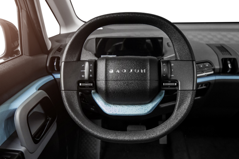 方向盘采用两幅式平底设计,外圈采用见方的圆形,观感上更像游戏手柄,屏幕是10.25英寸,具备像语音交互等众多车联网功能。