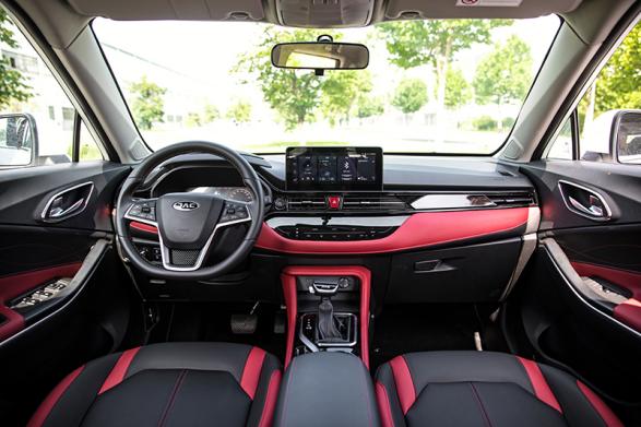 内饰方面,嘉悦X4采用红黑撞色搭配,并加入镀铬与钢琴烤漆面板点缀,中控台采用双屏组合,10.25英寸的中控大屏集成了J-Link智聆3.5车联网系统和科大讯飞车载语音3.5系统,还支持手机APP远程操控,此外10.25英寸液晶仪表能够进行3种模式自由切换。