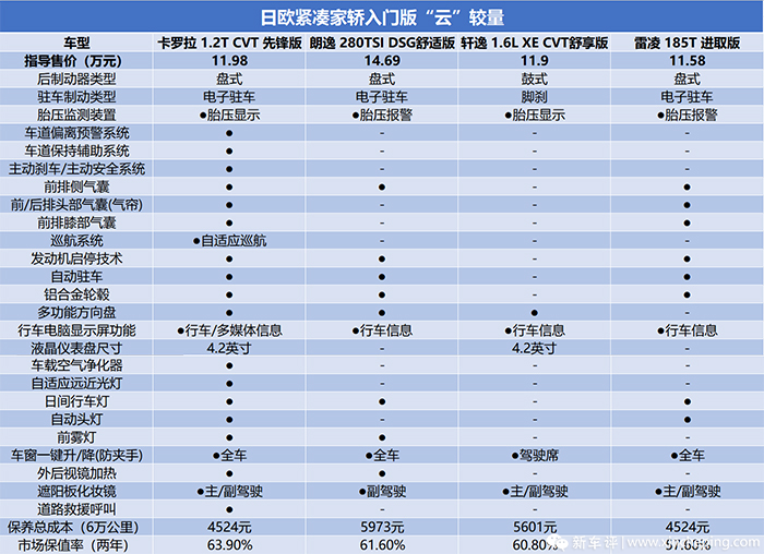作为经济取向的车型,入手后的保养成本自然也是大家关心的方面,毕竟买这类车的消费群体总的来说都属于经济敏感型人群。以家用车6万公里的总保养成本为界限,从各家查询到的数据可以知道(广州地区),考虑到有两位同场的选手均隶属于丰田系,下面就以卡罗拉1.2T的保养费用作例,试算推演得出约4524元。