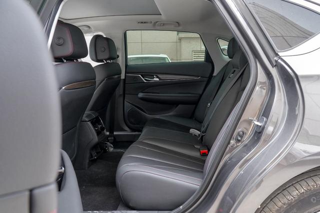 后排座椅和前排一样填充物厚实且柔软,并且座垫长度也足够长,中央通道地板凸起也很小,中短途乘坐并不会有压力。后排中央扶手可同时扩展出后排杯架、独立储物槽和独立储物格,可以看出细节优化很用心。并提供了后排独立出风口,顶配车型还配备了独立空调。此外,后窗和后风挡玻璃都配备了遮阳帘,营造出了私密的后排乘坐空间。