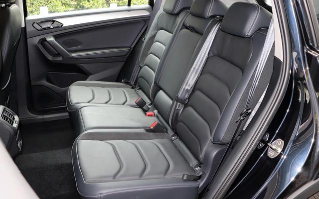 内饰仍然是大众品牌一贯的家族式特色,布局规整用料扎实,看起来并没有什么新鲜感。豪华版和旗舰版分别配备了8英寸和9.2英寸触屏系统,内部功能涵盖了导航、手机互联、语音控制等功能,基本能够满足日常出行需求。空间一直是途观L的强项,看到后排,身高1.72米的体验者在前排座椅调至最低的情况下,头部空间为1拳2指,后排腿部空间相当宽裕、头部空间约有1拳。因此,像"葛优躺"这种操作对于途观L后排乘客来说都是没问题的。