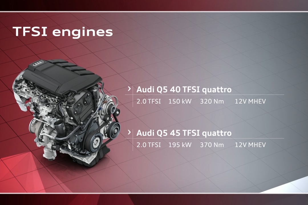 汽油版车型搭载四缸TFSI发动机,将推出功率为150千瓦的40 TFSI发动机和功率为195千瓦的45 TFSI发动机。它相比改款前变动最大的地方,在于它增加了一套12V的MHEV系统。