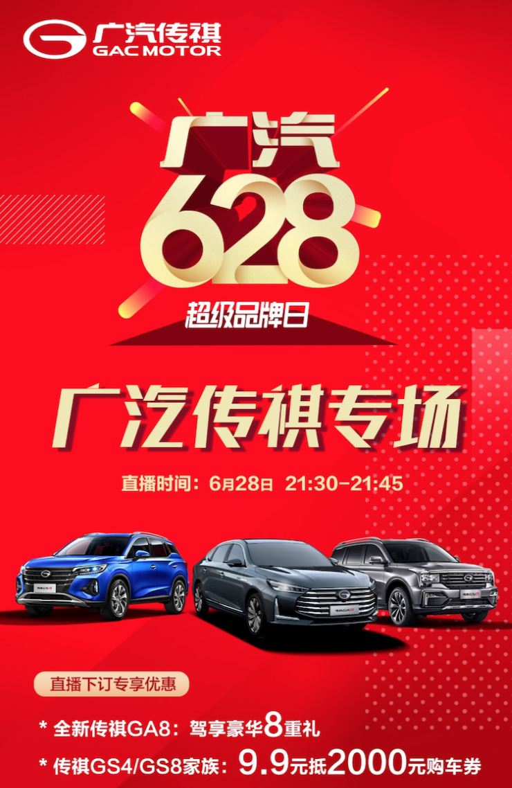 (在广汽628超级品牌日广汽传祺专场直播间购车享好礼)