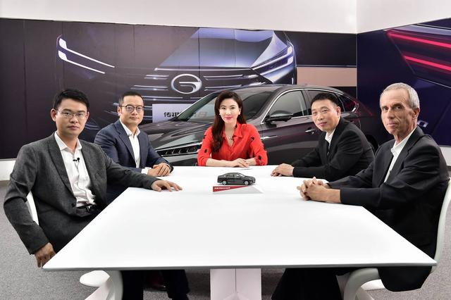 (广汽研究院常务副院长、动力总成专家吴坚;副院长、造型设计大师张帆;首席技术官、底盘调校专家Marco;智能网联技术研发中心主任助理张雄详细介绍全新传祺GA8)