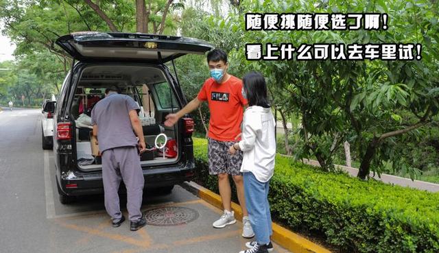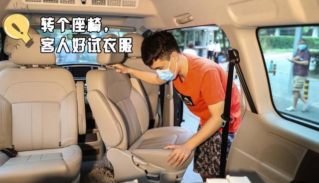 在后备厢将商品展示出来,比之前更加整齐,同时,如果顾客有试衣服的需求,也可以去车内试,把所有门都关好就可以了。