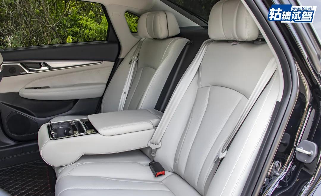 在座椅上,坐在上面能感觉到包裹性和支撑度都比大部分车型好,尤其是后排。至于原因,全新传祺GA8的工程师向轱辘哥介绍,座椅靠背提供27°最佳舒适角度,并且座椅表层还有记忆棉,加上无缝贴合人体曲线的设计,有效保证了座椅的人机工程学。