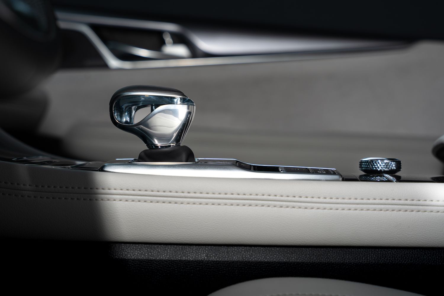 此外,小巧的电子换挡杆,使用了包含了皮革、金属以及水晶三种材质打造,用料可以说非常考究。