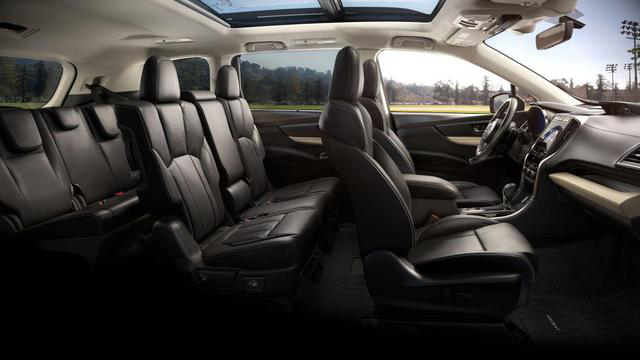 在内饰方面,新车的主要变化集中在配置上。 EyeSight驾驶辅助系统首次配备了车道保持和车道居中功能,并支持盲点监控和后方交叉路口警报功能的选装;此外新车还配备了远近光LED大灯、第二排/第三排座椅安全带未系提醒、3区空调以及8个USB和1个120伏插座、19个杯架等。高配车型的车内还配备Slate Black打孔皮革内饰,并配有银色缝线。