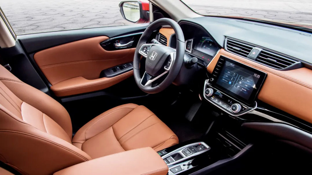 众所周知,传统汽油机在低速状态下油耗偏高,而纯电动车型不擅长高速行驶,因此本田的i-MMD混动系统非常巧妙地避开了这两种工况,通过3种运转模式的切换,将纯电、混动以及纯油模式应用在了最高效的场景下。在低速、低负载时,汽油机停机,由锂离子动力电池给驱动电机供电。此时,这台131马力、267N·m的驱动电机能够带来比自家1.0T以及1.5L发动机更强的动力输出。并且得益于电动机本身的出力特性,车辆在行驶时还能拥有媲美电动车的动力响应性能,体感更加爽快。